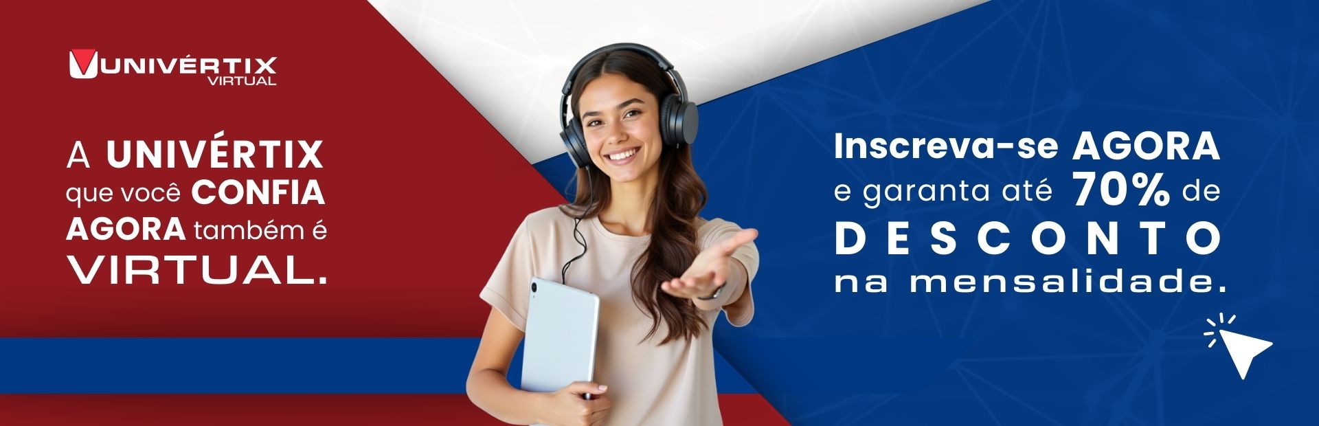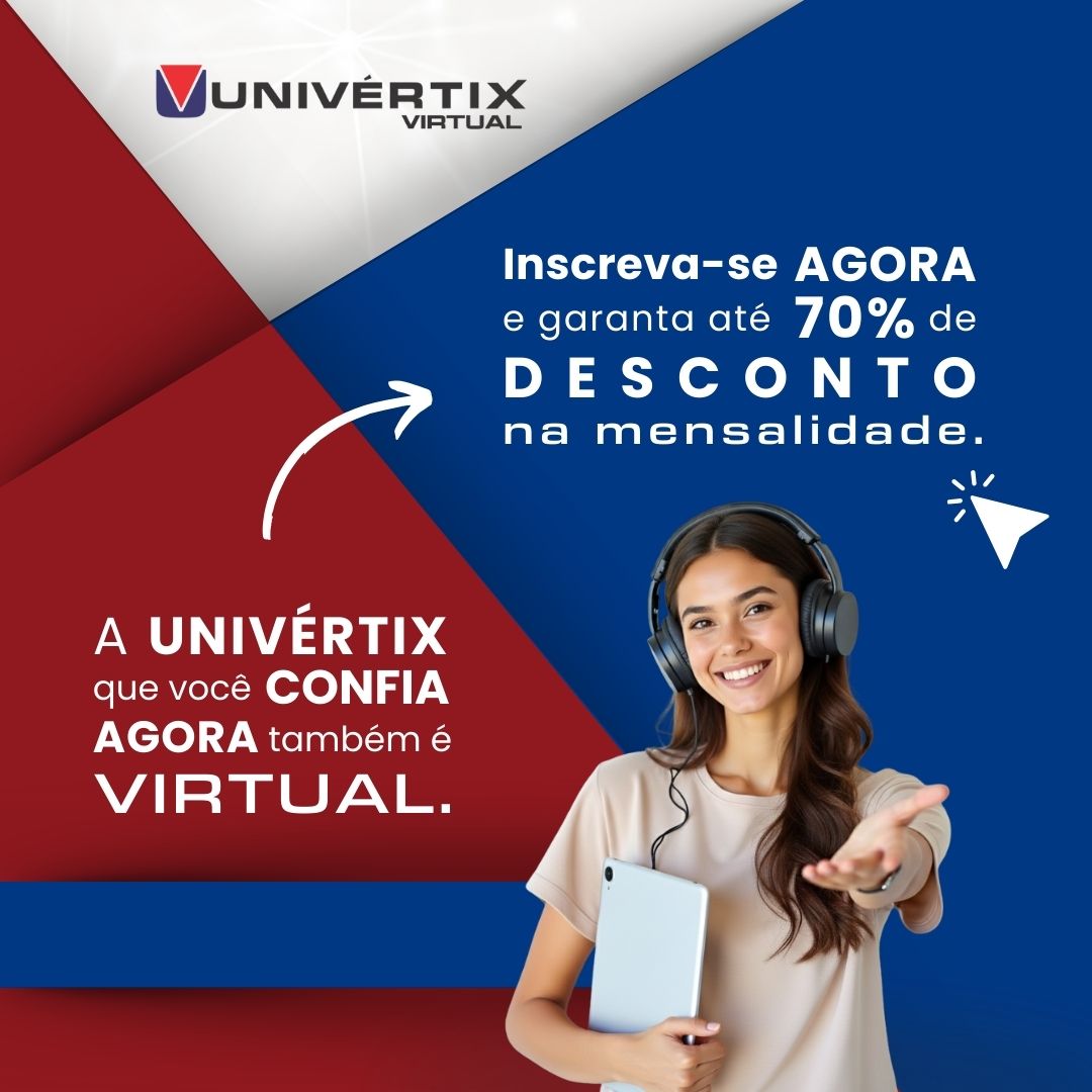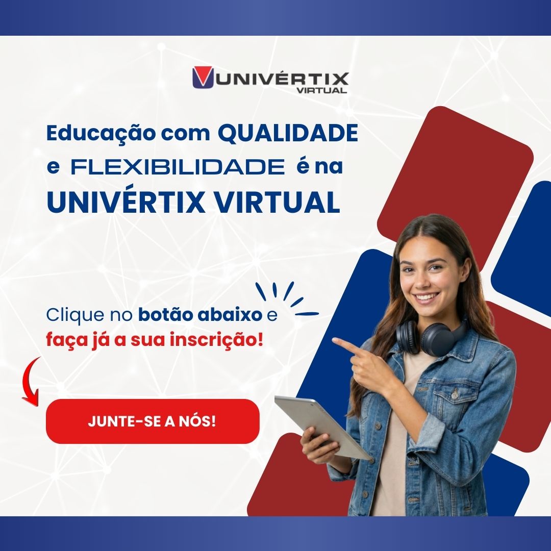 Em 2026, a Univértix dará um novo passo em sua trajetória: A Univértix Virtual,! Credenciada pelo MEC com nota máxima para a oferta da educação à distância, a Univértix iniciará sua oferta de cursos de graduação, pós-graduação e cursos livres a distância. Essa conquista reafirma nosso compromisso em levar ensino superior de excelência a estudantes de todo o Brasil, unindo tradição, inovação e acessibilidade.